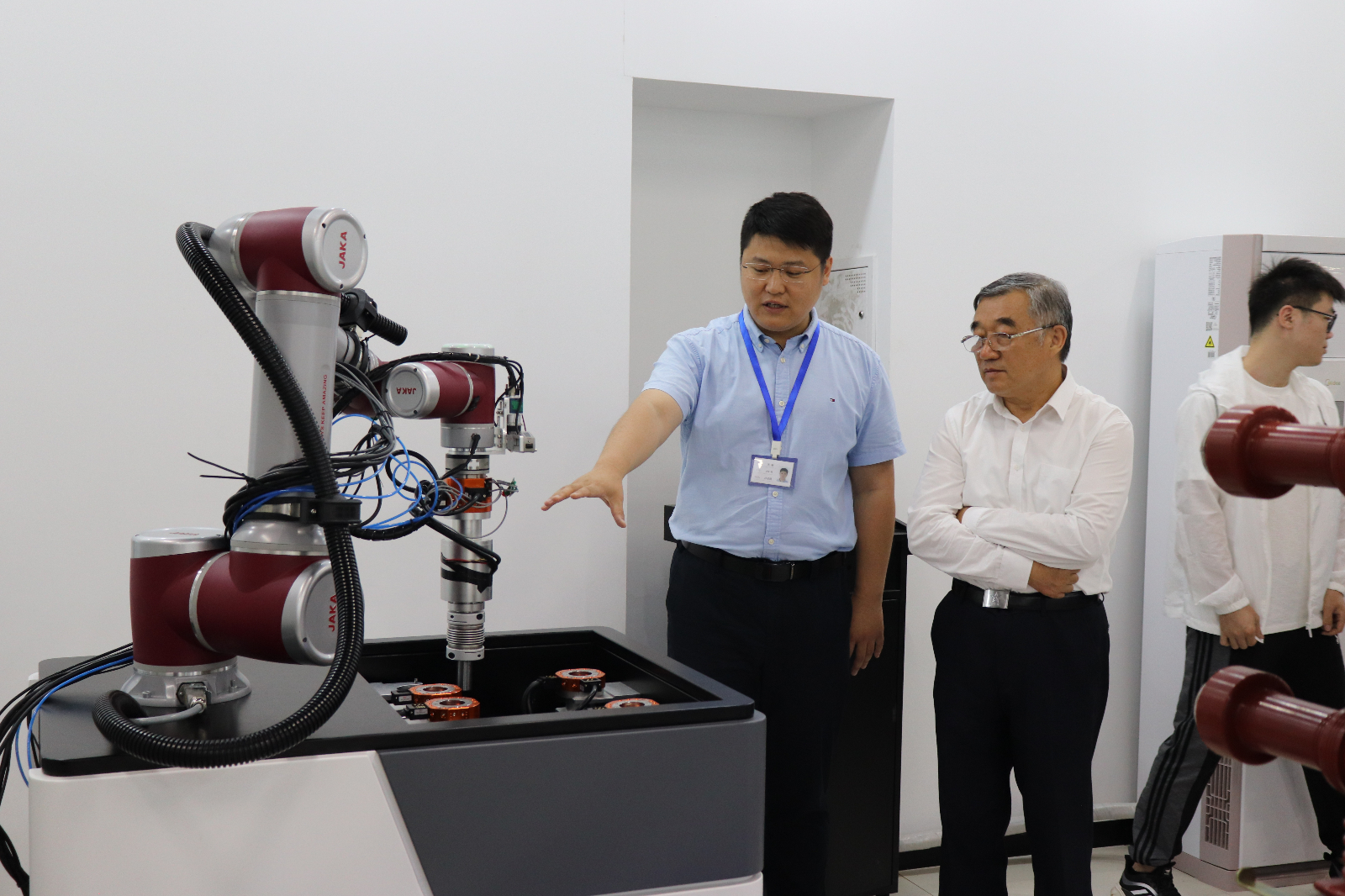 在拓普電氣智能裝備實驗室,研發(fā)部總經(jīng)理王釗向大家介紹了企業(yè)發(fā)展歷程,并對我司第二代高壓開關(guān)柜智能檢修機器人在產(chǎn)品研發(fā)、科技創(chuàng)新、項目落地、市場前景等方面的情況進行了詳細介紹。各位領(lǐng)導(dǎo)對我司第二代高壓開關(guān)柜智能檢修機器人產(chǎn)品給予了充分的肯定,并希望我公司趁勢而為,取得更好的發(fā)展。公司參會人員圍繞該產(chǎn)品未來發(fā)展等具體問題與參觀嘉賓進行了深入交流。